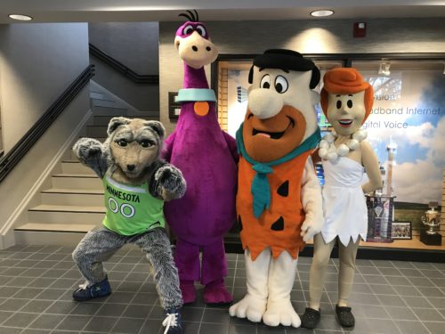 The Cooperative Celebration was open to the public and featured a free walleye dinner prepared by the Bemidji Fire Department Fish Fry Crew and Lueken’s Village Foods, door prizes, kids’ activities like face painting, balloons, temporary tattoos, storytelling, animals and entertainment from the Headwaters Science Center, Concordia Language Villages, and special guests the Flintstones as seen on Boomerang and Minnesota Timberwolves mascot Crunch. Known Only Locally & Friends from Bemidji provided the musical entertainment.